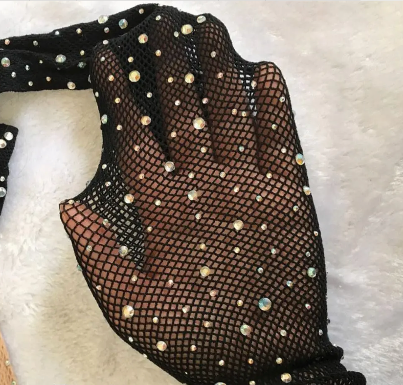 Sexy Tights Women Stocking Festival Outfit Rhinestone Nude Show Outfit Burlesque Drag Queen tights Vegas Stage Performance Cabaret costume Gloves