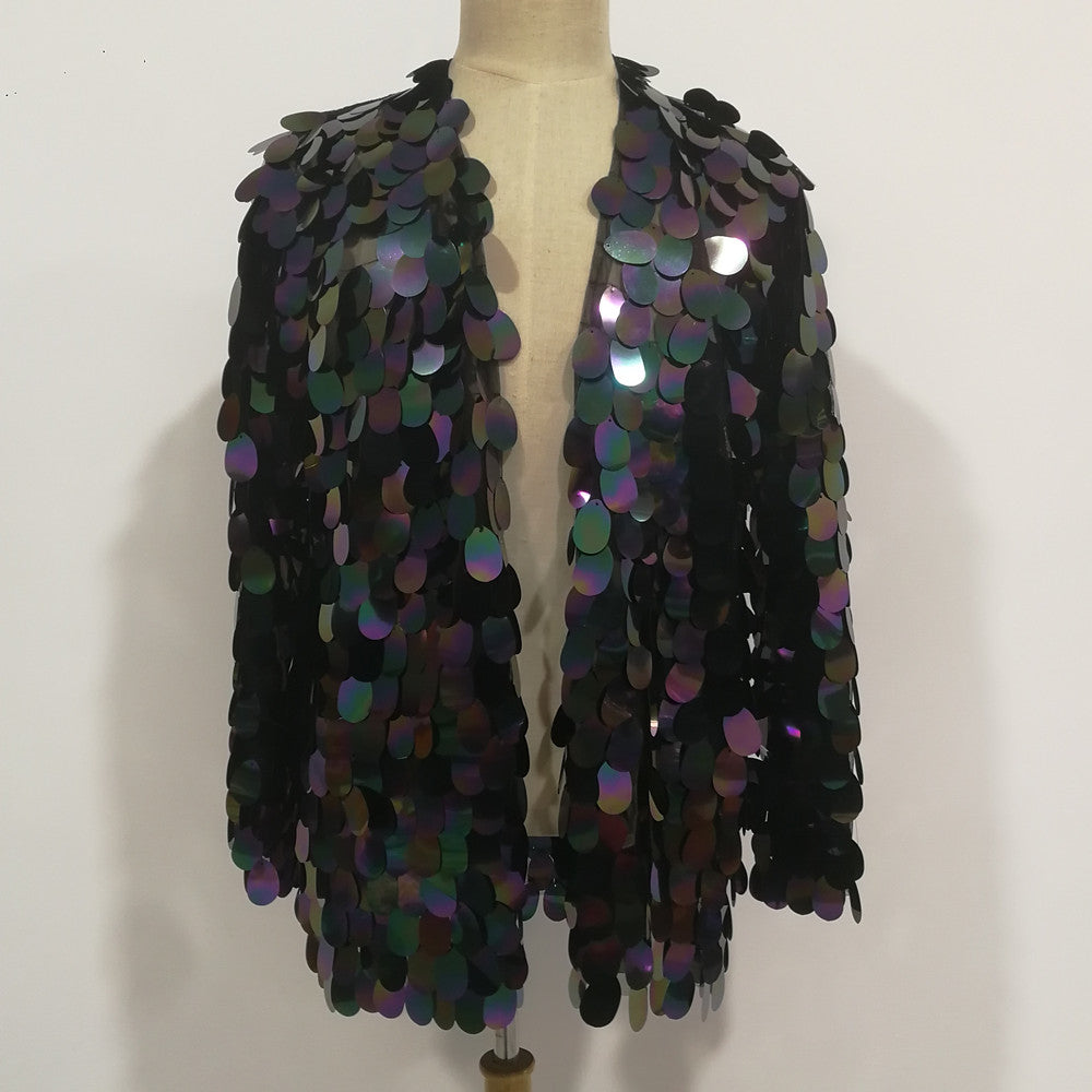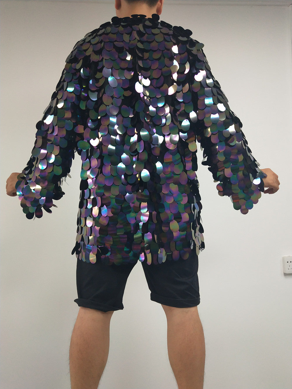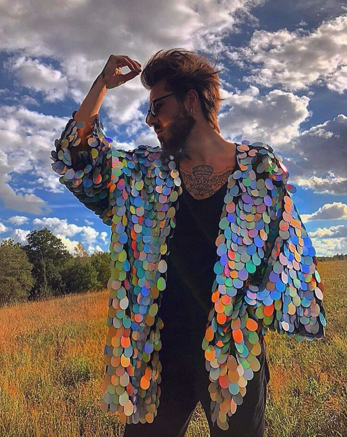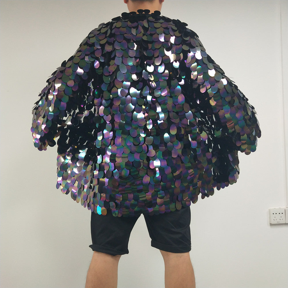 Festival Clothing Men's Kimono Holographic Sequin Jacket Mirror Blazer Disco Costume
