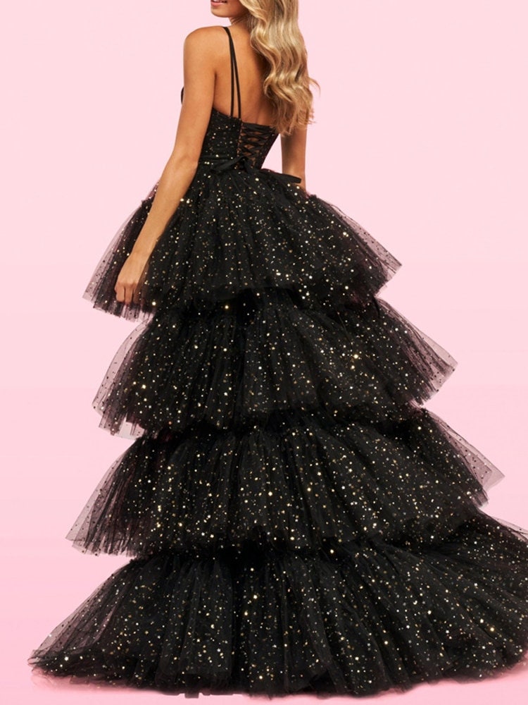 Party Outfit with Fringe Prom Dress Bride Party Dress Birthday Dress Gown Mesh Sparkling Dress
