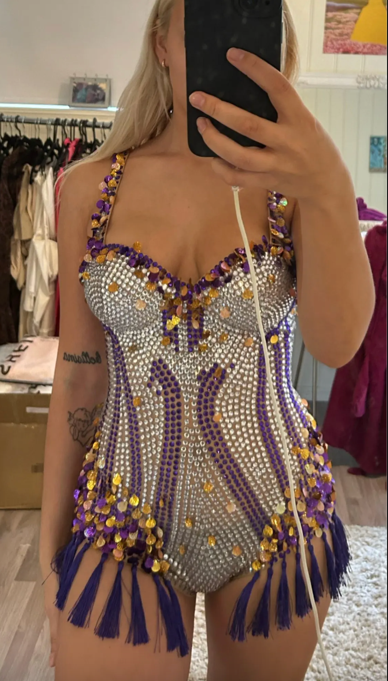 Taylor Swift Era Rhinestones Dress Leotard Sequin Festival Outfit Prom Dress Bride Bodysuit Jumpsuit Dress Celeb