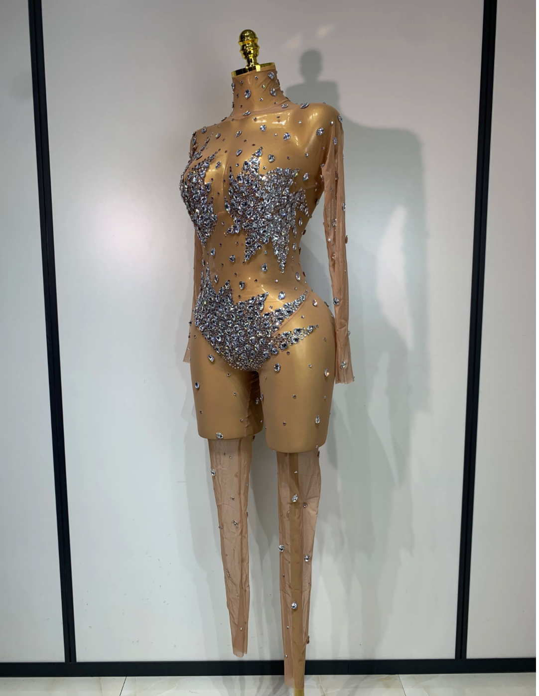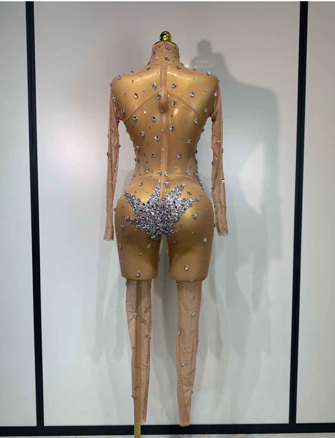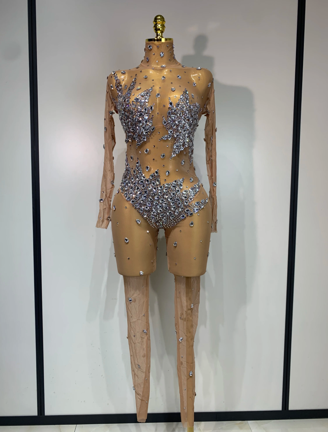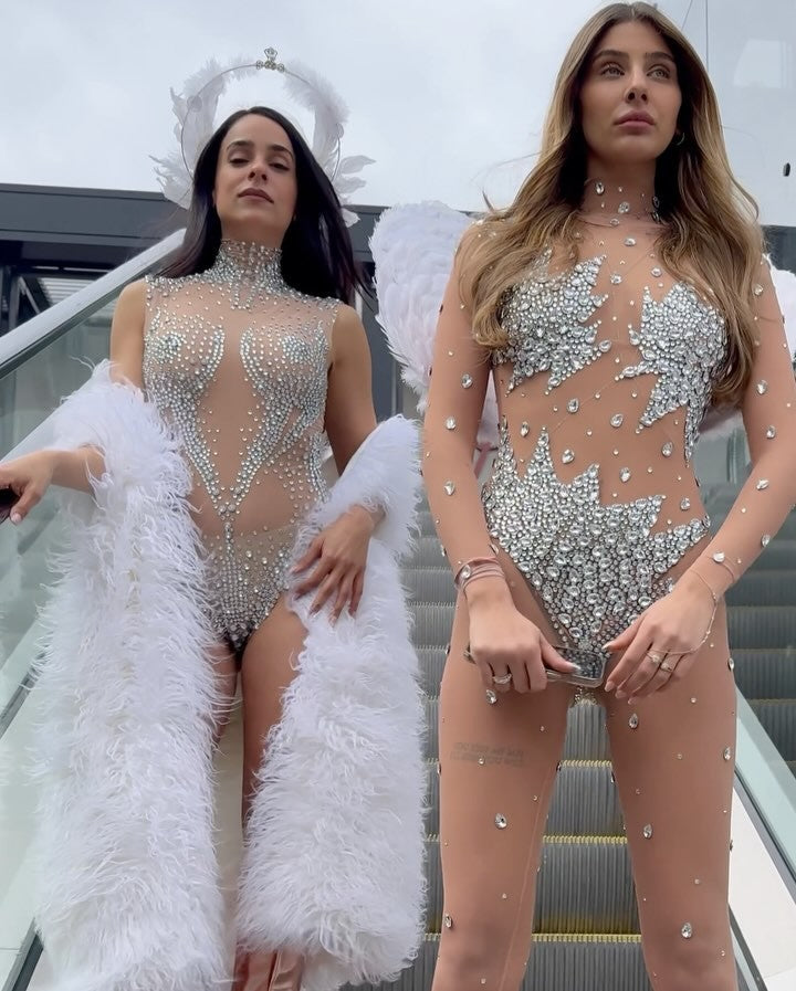 Women Sparkly Rhinestones Mesh See Throug Bodysuit Jumpsuit Stage Performance Costume Nightclub Party Luxury Birthday Outfit